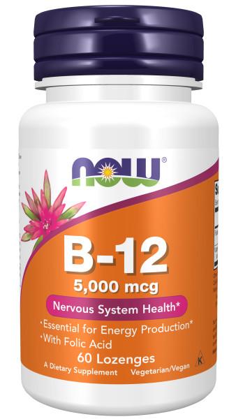 NOW Витамин B-12 5000 мкг + Фолиевая кислота, 60 таб