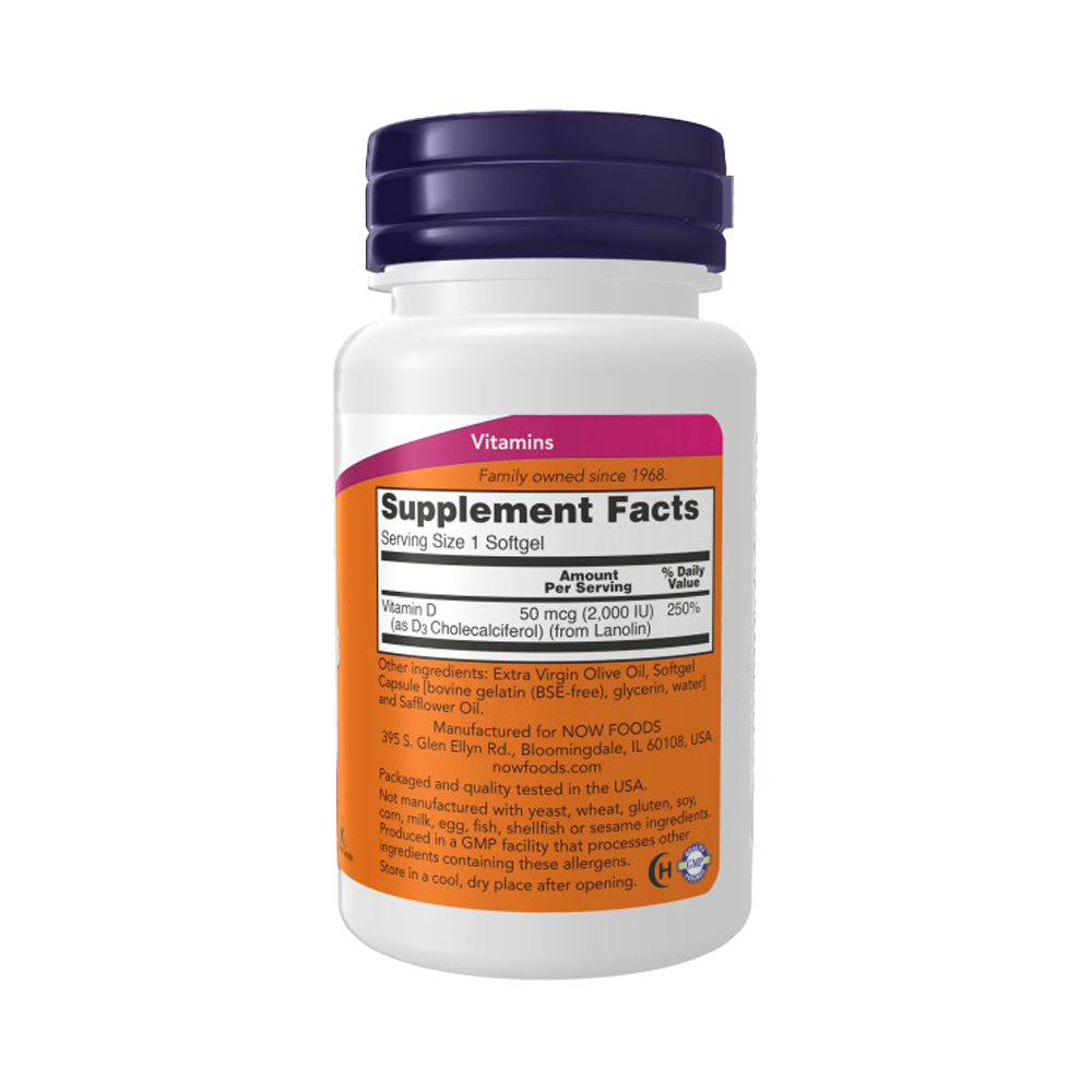 NOW Витамин D-3 2000 МЕ, 120 капсул